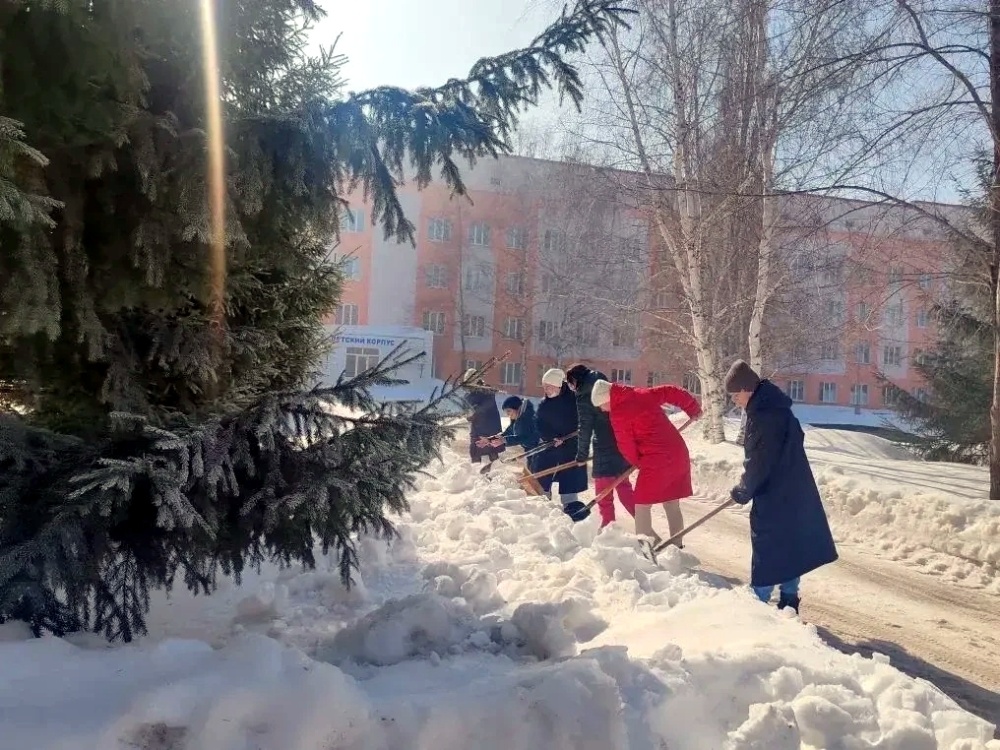 К работе подошли основательно: задействовали не только сотрудников всех подразделений, но и технику. Спецмашины помогли убрать снежные массы с парковок, проездов и основных пешеходных маршрутов, а коллектив расчистил территорию возле корпусов и входные группы отделений.