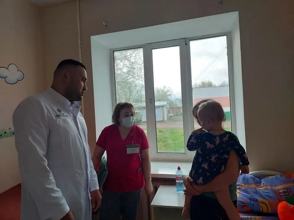 Оценил организацию приёма, соблюдение санитарных норм и маршрутизацию маленьких пациентов. Разговаривал с родителями и медперсоналом.