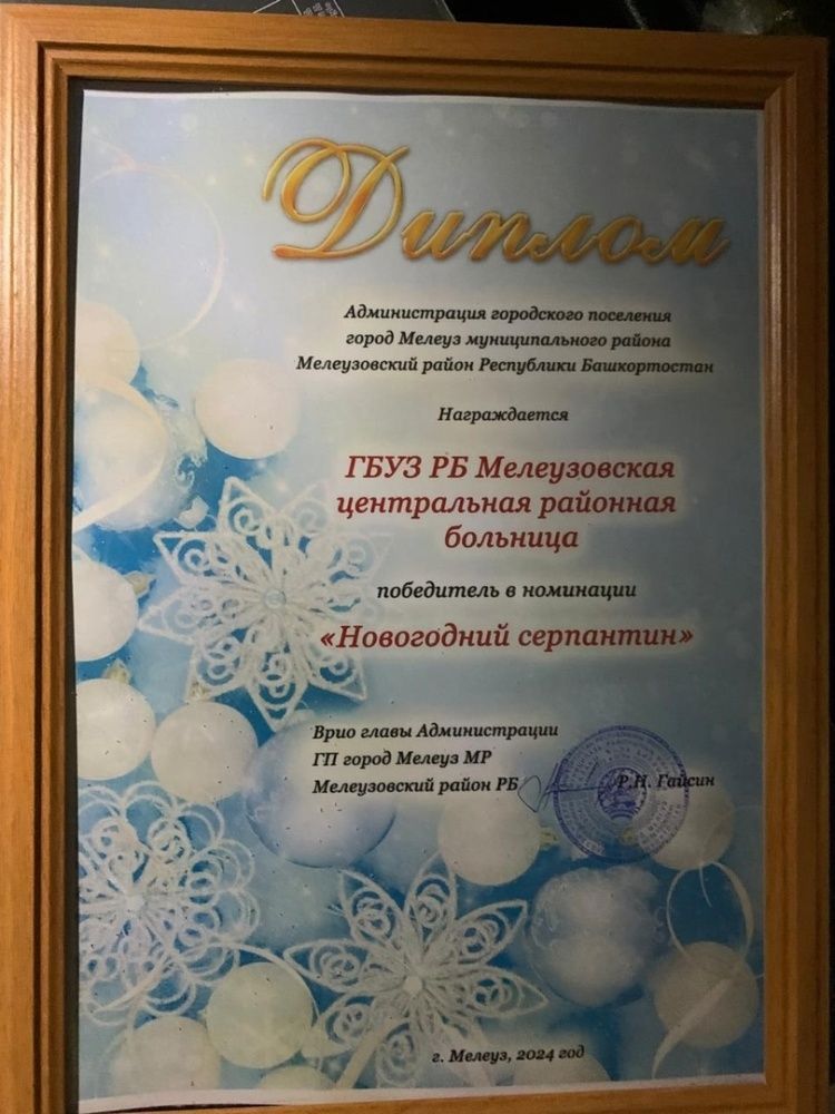 ГБУЗ РБ Мелеузовская ЦРБ удостоилась диплома в номинации "Новогодний серпантин"