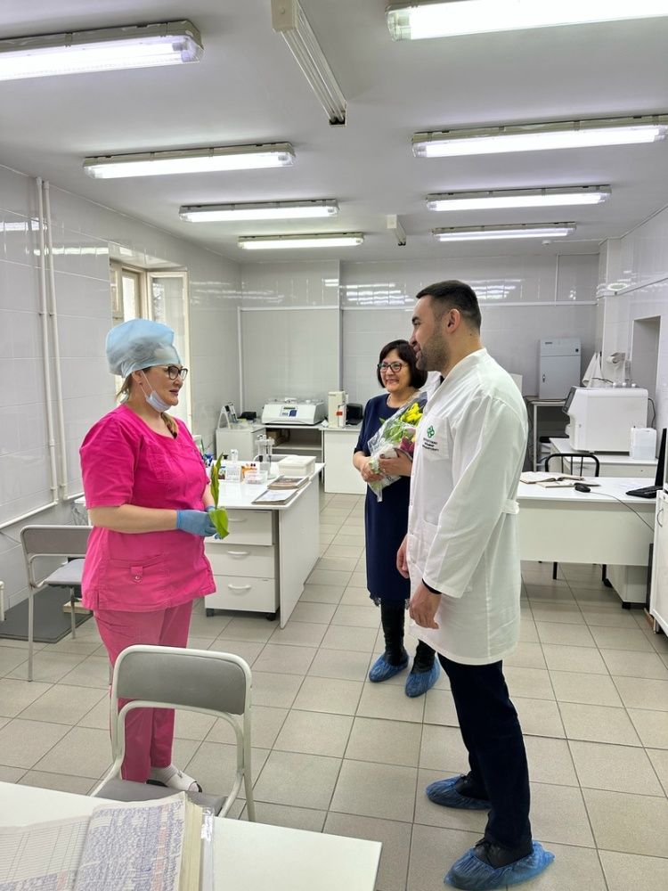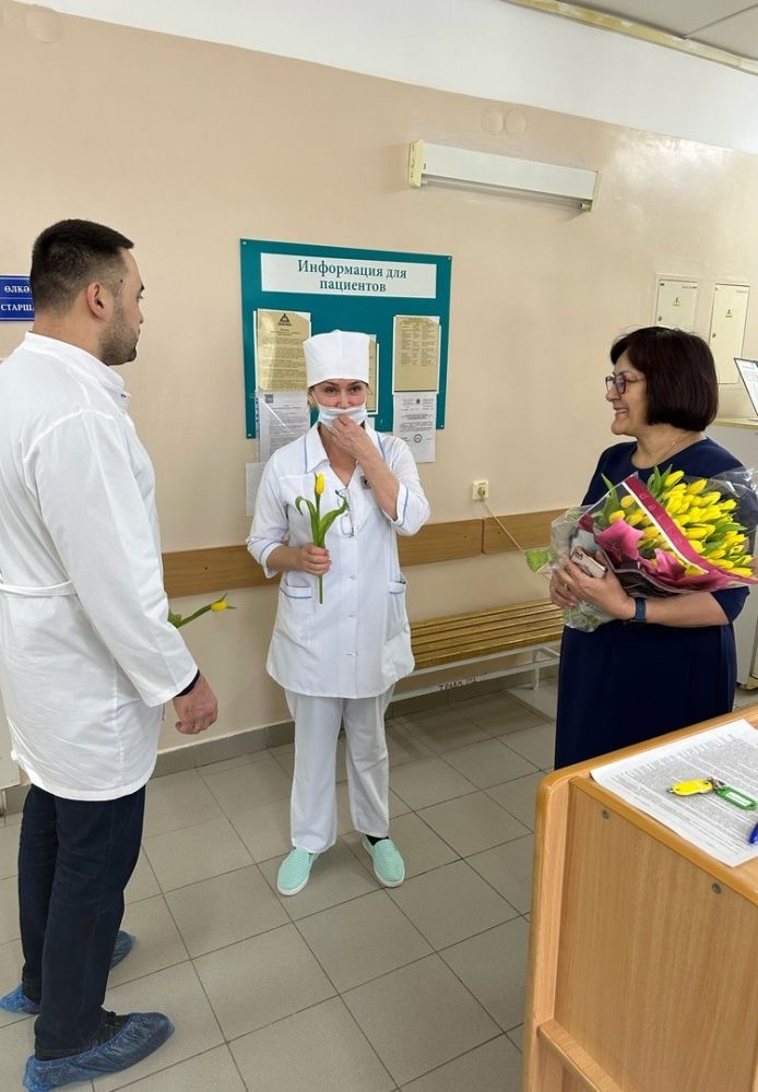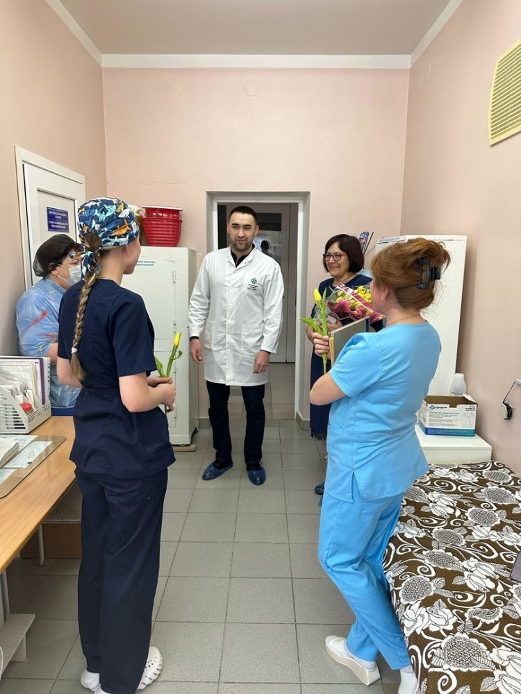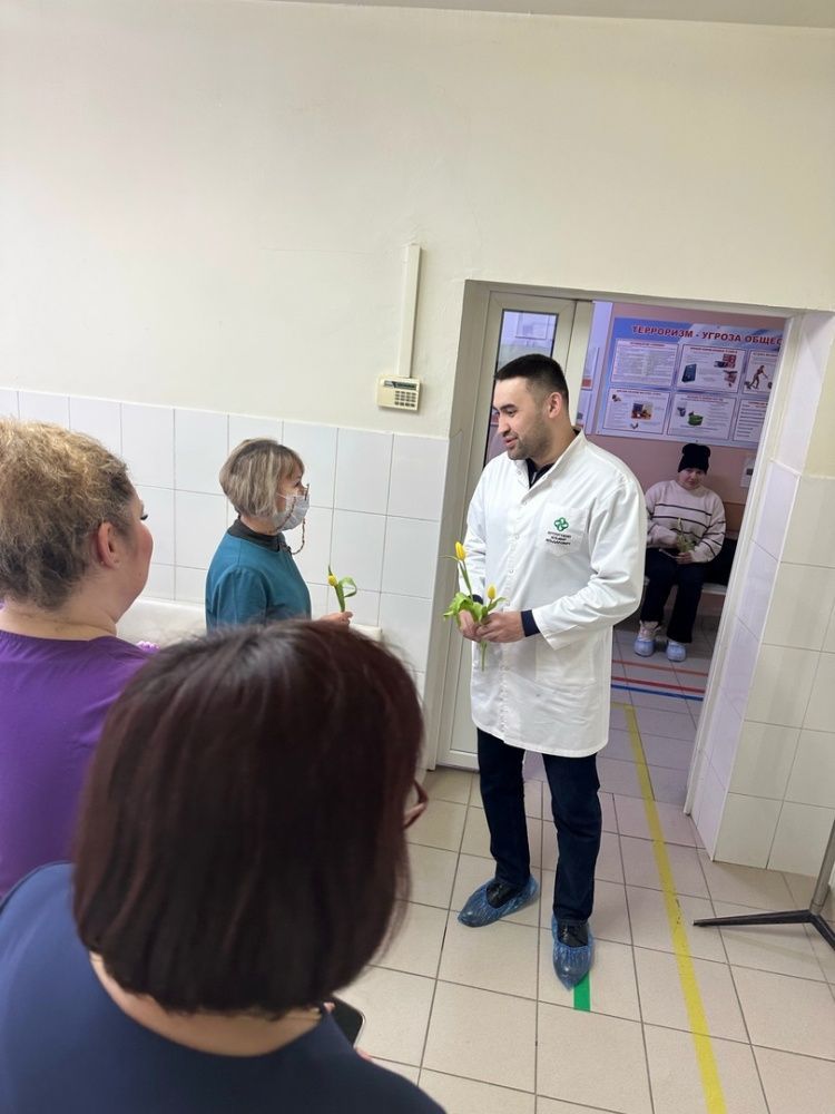 Совместно с профсоюзным комитетом районной больницы мы поздравили всех женщин коллег, которые сегодня были на дежурстве, вручили им цветы и теплые слова благодарности. Ваш труд, ваша доброта, терпение и профессионализм – это основа нашей работы. Вы каждый день дарите здоровье, заботу и надежду нашим пациентам, и сегодня, в праздник, вы снова на посту.